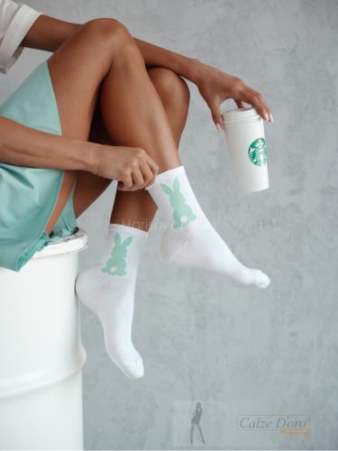 MILENA női zokni 98, nyuszi, white/green 37-41